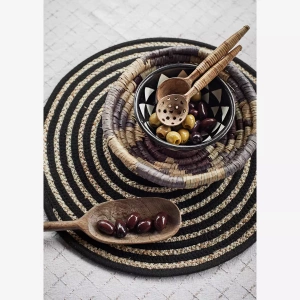 Cuillère de service en bois de manguier. Elle peut être utilisée pour servir des petites entrées. Dimension: L 18cm